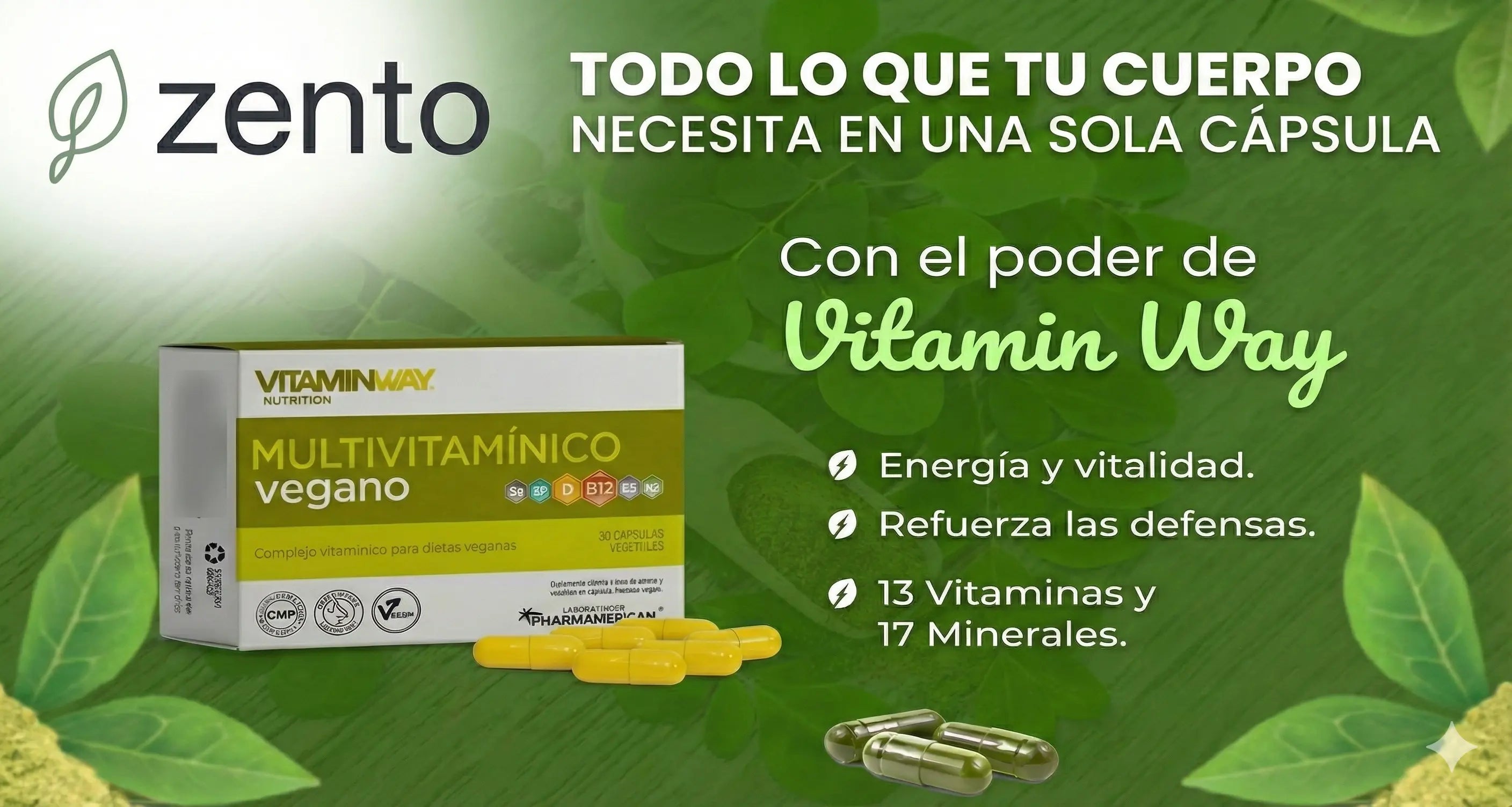 13 vitaminas + 17 minerales en una sola cápsula vegetal. Sin complicaciones.